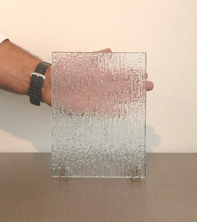 Sand blasted design can be put on any of the smooth glass types. See the Design library for more examples.