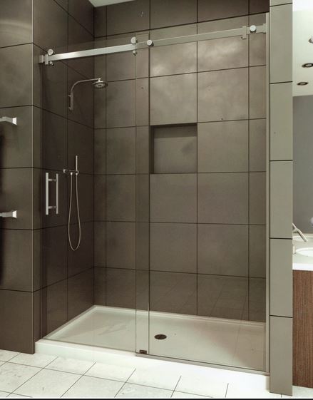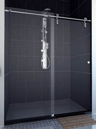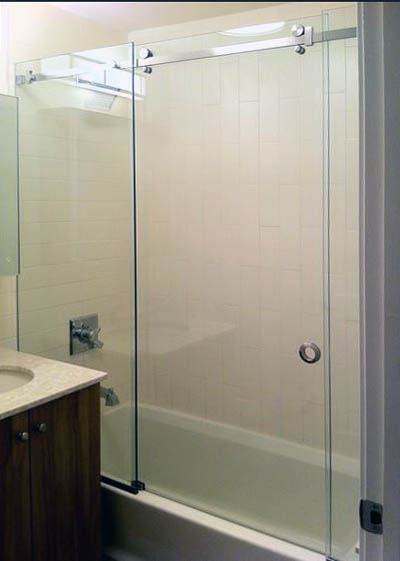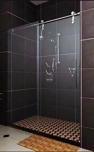 There is a new trind in the Frameless shower door world. It is an old style revisited using frameless shower door materials. Sliding doors, one door moves while the other panels are stationary. The frameless sliders strive to keep the shower entrance barrier free and without wall jambs. In some cases where clearence is an issue this type of a unit is a salution. The sliding door offers a smaller walk-through than can be achieved with the Euro Framless swing door buy several inches. None the less they off an attractive new look to the shower door world.