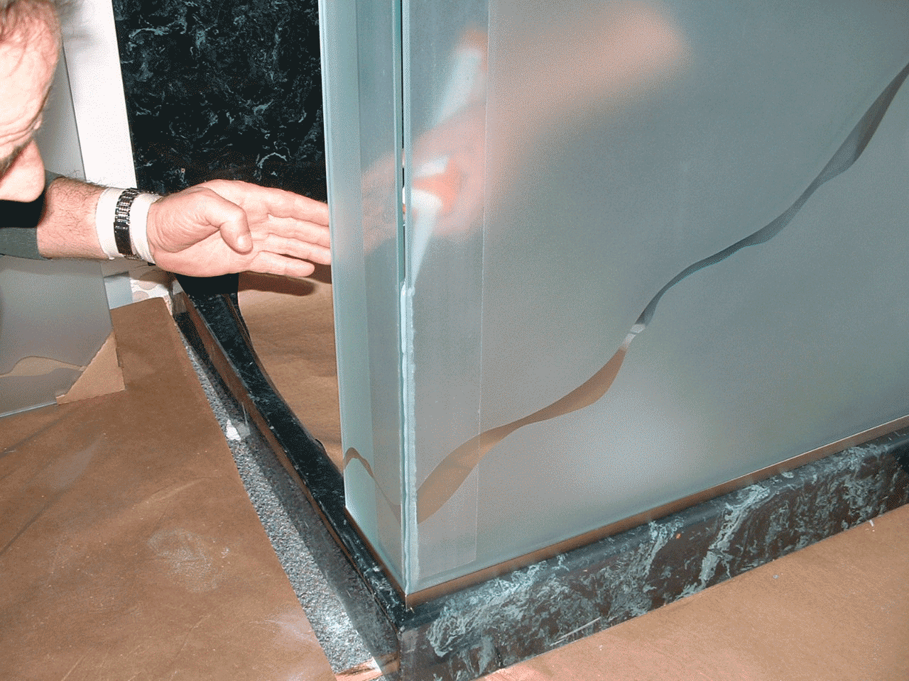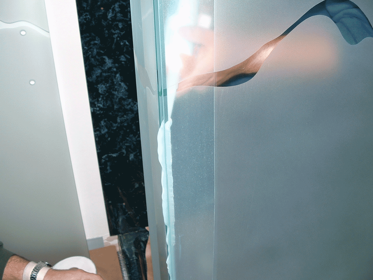 aquarium corner silicone (99AS). Note that in the example picture the installers are using the S33 clear silicone (milky) to match the frosted glass. The